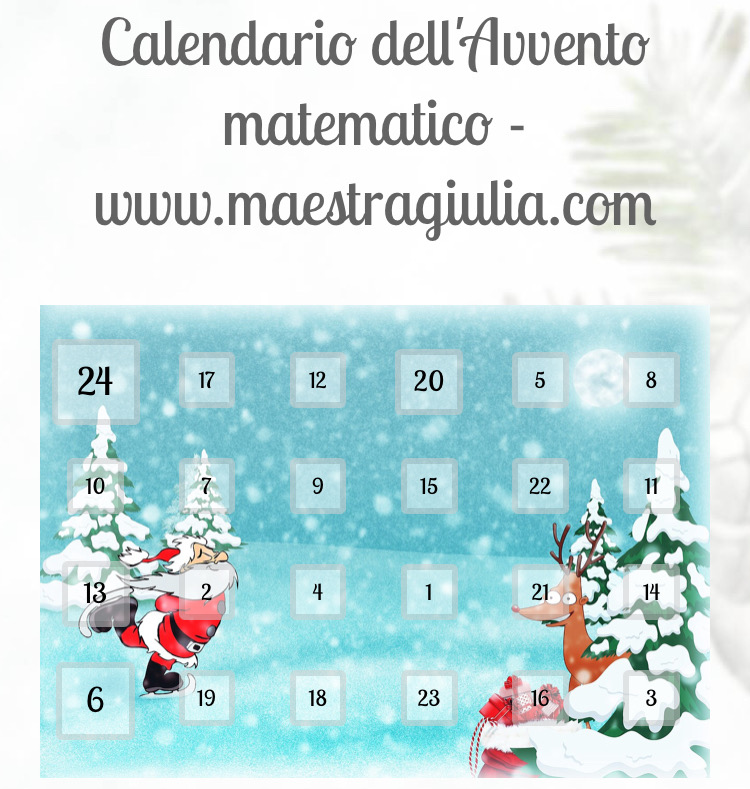 Ciao a tutti, ho pensato di condividere con voi un calendario dell’Avvento un pò particolare: un calendario matematico.