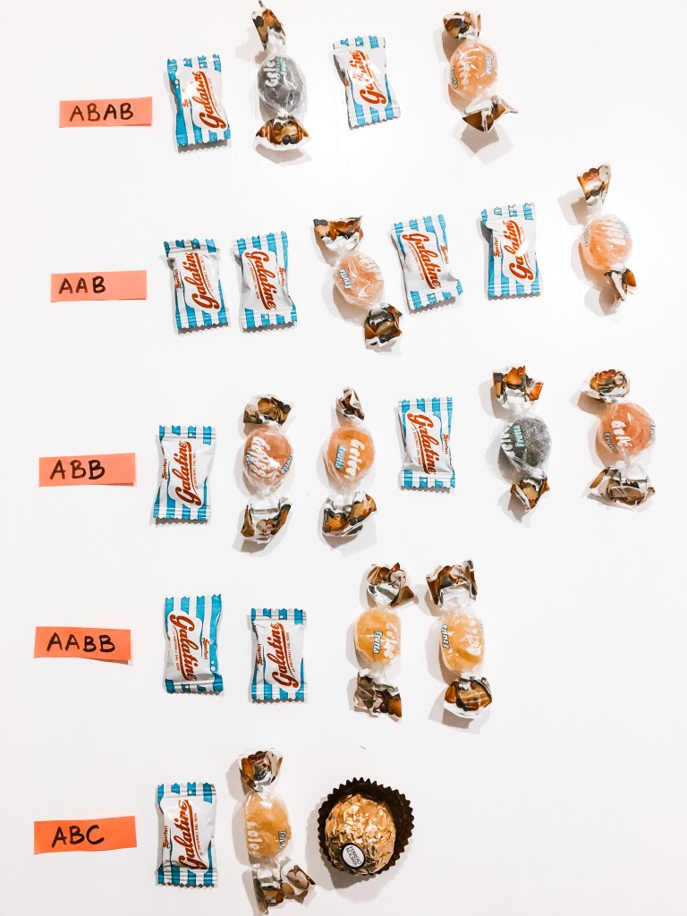 Ogni cosa intorno a noi può essere utilizzata per far fare dei giochi didattici ai nostri bambini. Quello che vi propongo qui sono dei ritmi fatti utilizzando i dolcetti della Befana, ma può tranquillamente essere fatto con altri materiali come tipi di pasta differenti oppure pezzi lego, biscotti, pezzettini di carta colorata… date libero sfogo alla vostra fantasia.