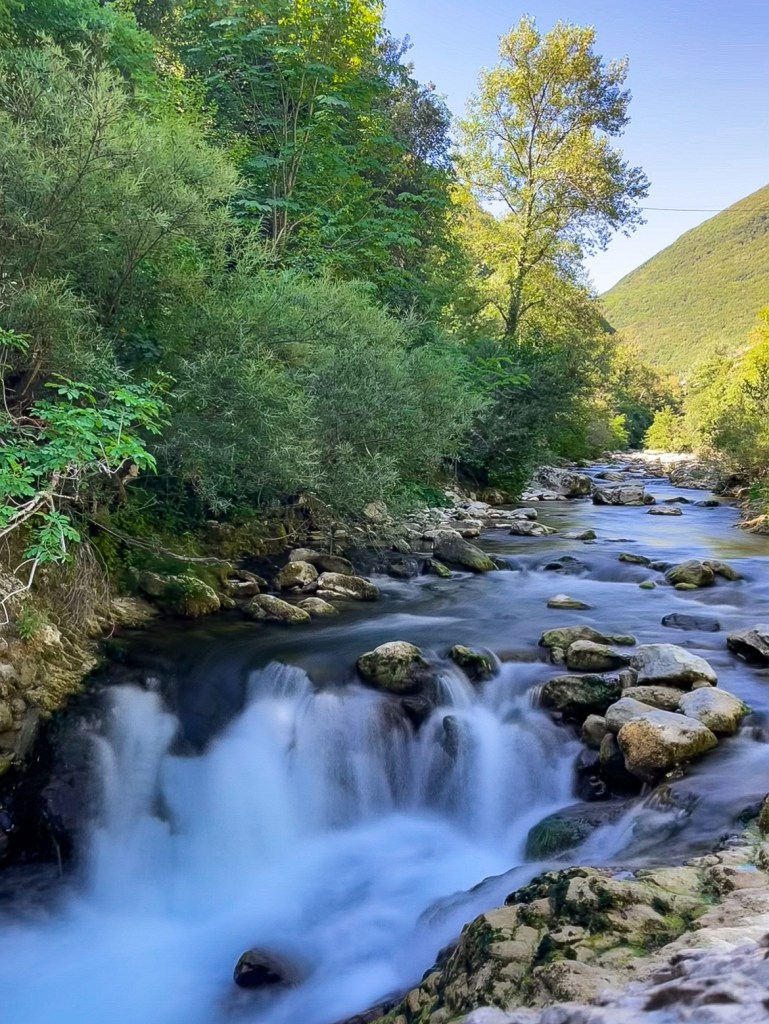 Qui il fiume Burano, ha creato nel tempo una gola davvero spettacolare, con cascate e piscine naturali profonde anche diversi metri.