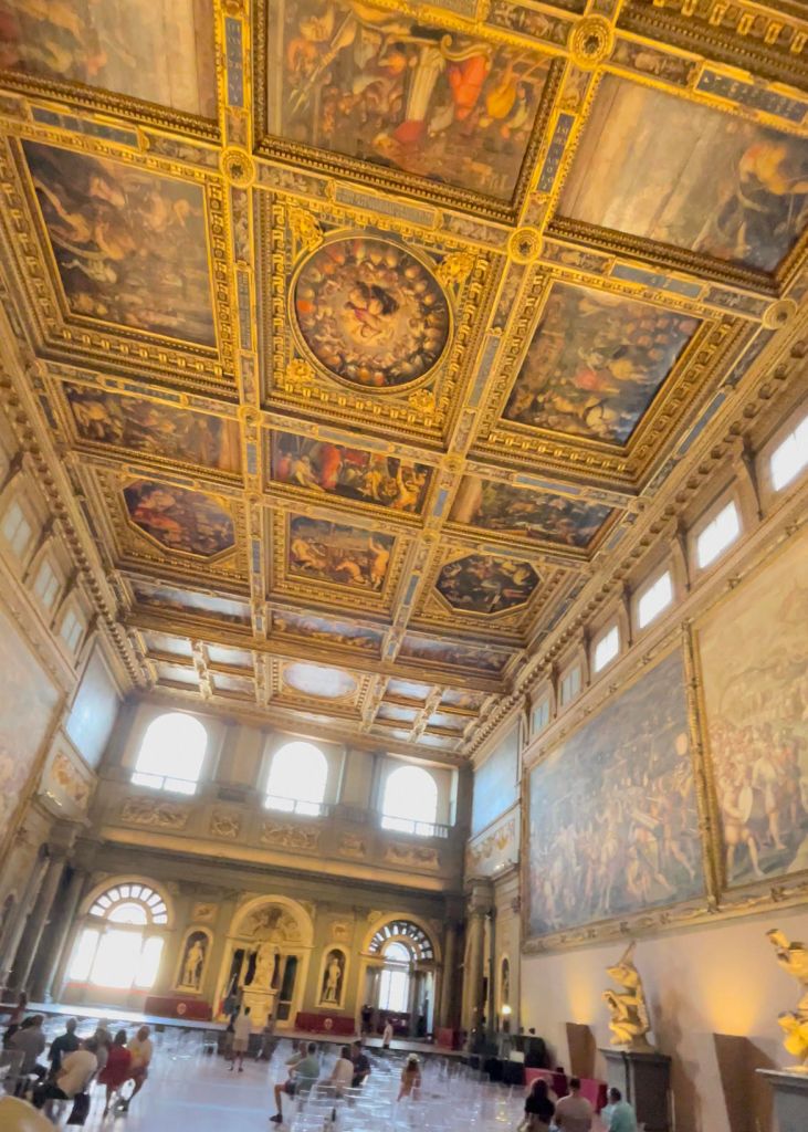 Avrete modo anche di vedere come il bellissimo e grandissimo soffitto della Sala dei 1000 sia sorretto, scoprendo l’ingegneristica struttura di legno che c’è sopra.