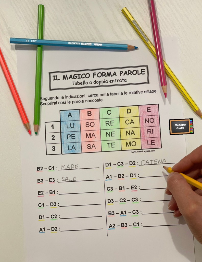 Una meravigliosa attività per lavorare sulle sillabe e sulle tabelle a doppia entrata; in questo modo unirete l’italiano alla matematica e, cosa più importante, farete divertire i vostri alunni.