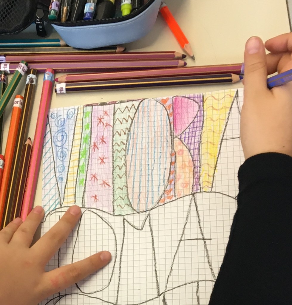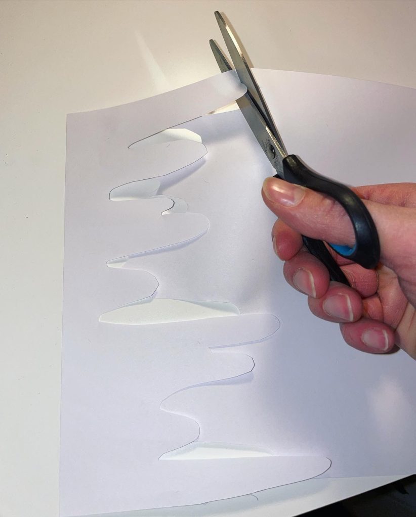 I bambini dovranno attaccare le strisce di carta nella parte delimitata dai puntini, per poi rigirarle un po’ su se stesse e incollarle nella parte centrale della testa.
