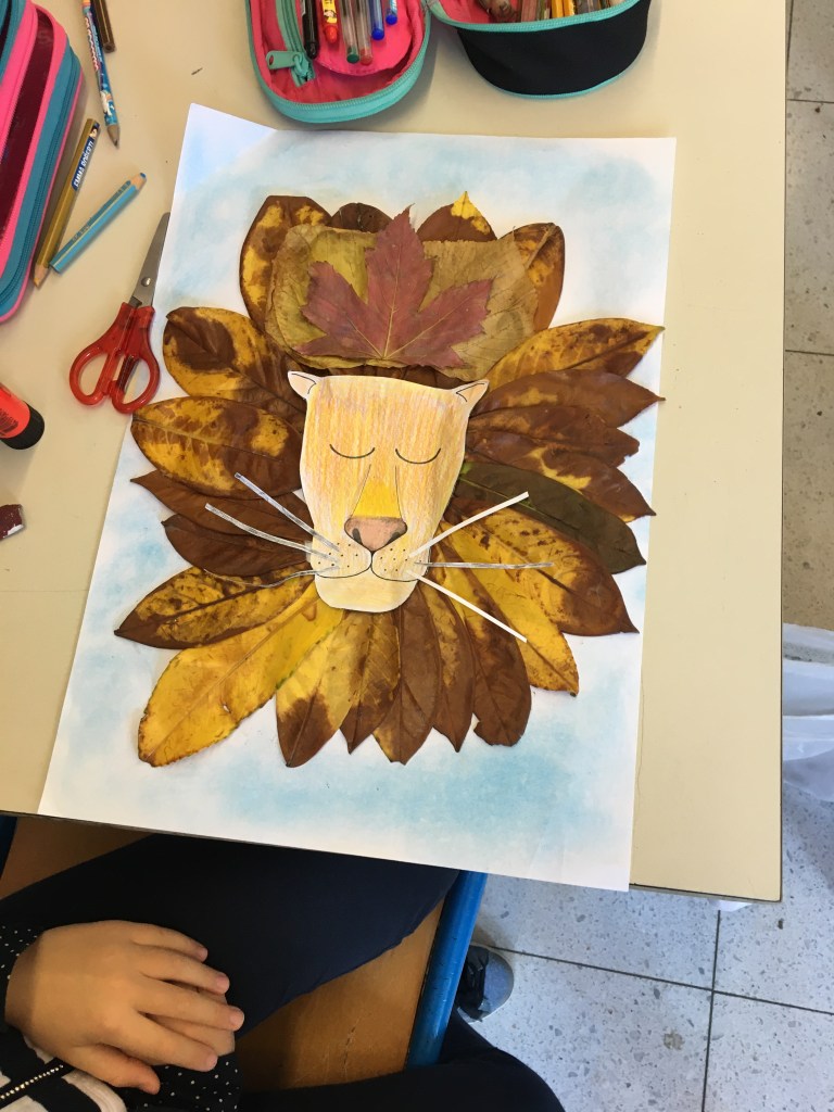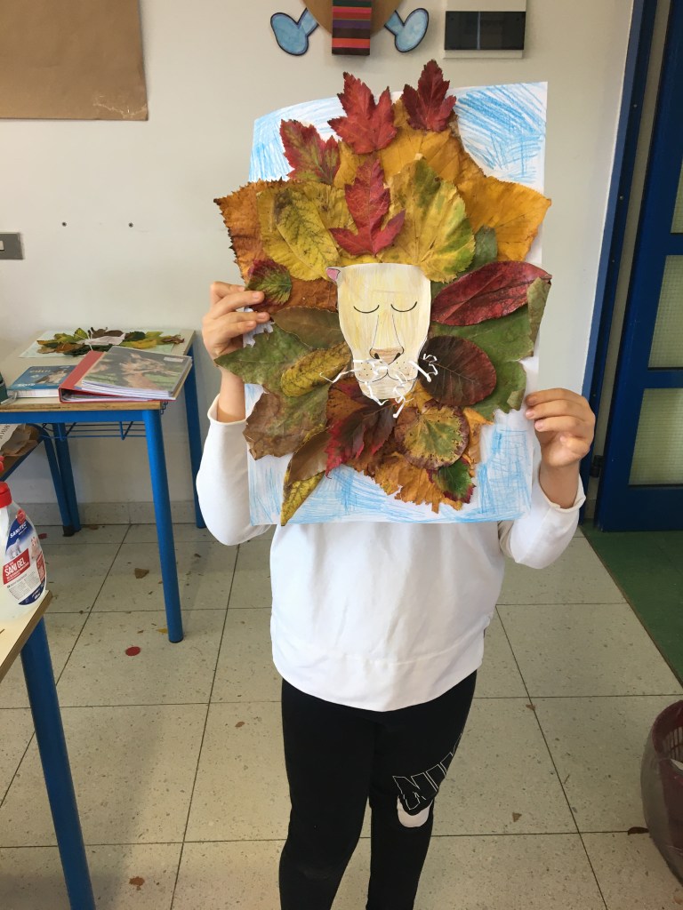 Cercavo un’idea per proporre ai miei alunni un lavoro da fare con degli elementi naturali che si potessero trovare in autunno e che, allo stesso tempo, fosse semplice ma d’effetto. Alla fine sono giunta a lui…il LEONE AUTUNNALE la cui criniera ĆØ formata interamente da foglie.