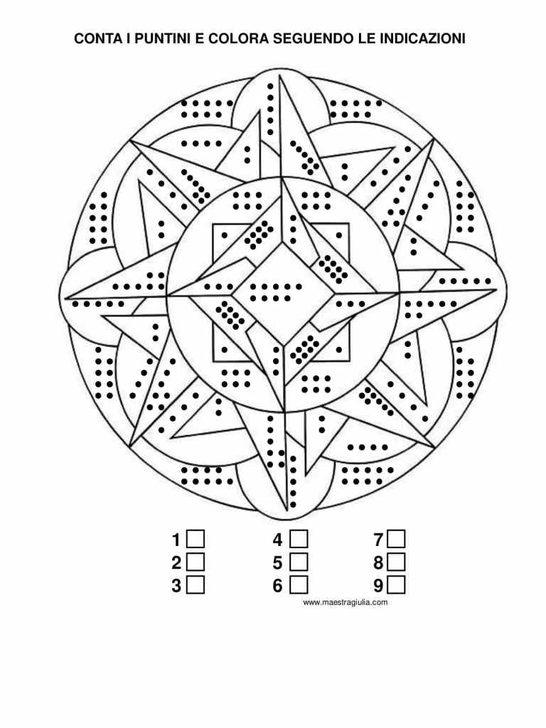 Nella scheda per gli alunni i quadratini affianco ai numeri (quelli sotto il mandala) sono in bianco e nero per permettervi di fare le fotocopie. Nella seconda immagine potete vedere, invece, come verrà il lavoro finito e i colori che io ho associato ai numeri. Basterà, all’inizio dell’attività, far colorare ai bambini i quadratini accanto ad ogni numero, in questo modo riusciranno a proseguire con la coloritura del mandala in autonomia. (Potete anche scegliere colori diversi dai miei).