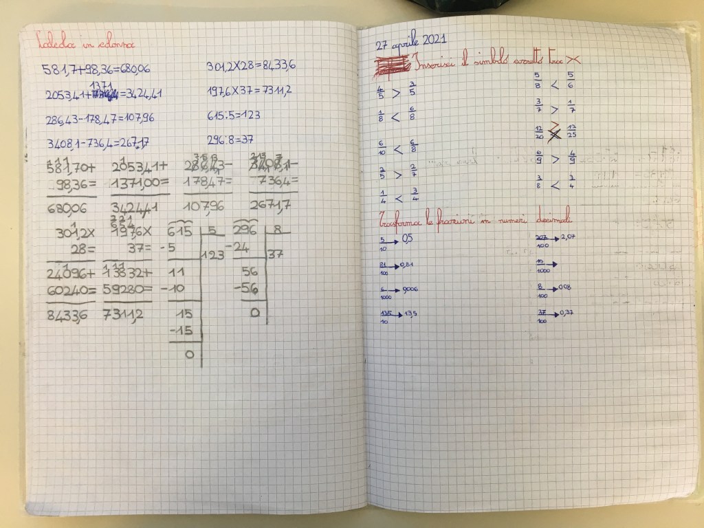 Quaderno di matematica classe 3^ (quinta parte) aprile 26, 2021Maestra Giulia MontanariLascia un commento